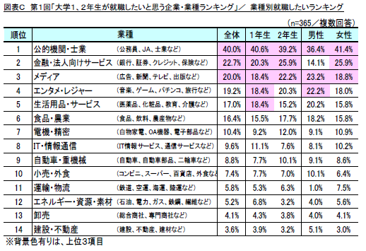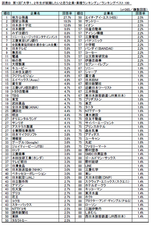 ・調査名称 : 第1回「大学1、2年生が就職したいと思う企業・業種ランキング」調査