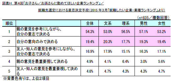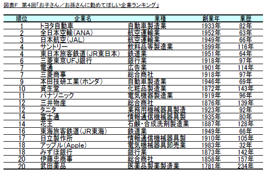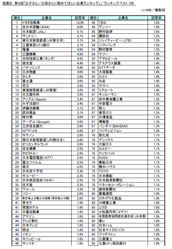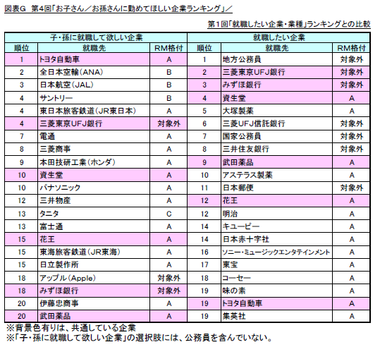 ・調査名称 : 第4回「お子さん/お孫さんに勤めてほしい企業ランキング」調査