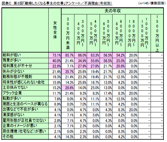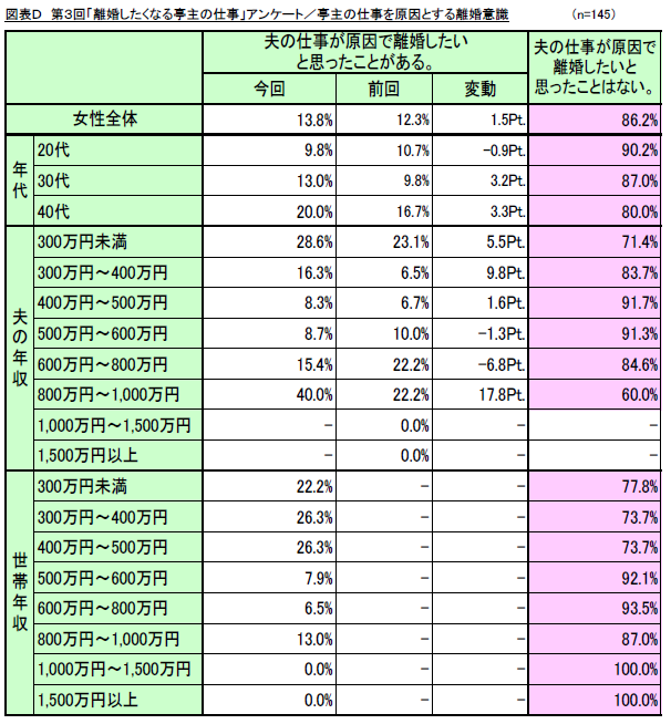 ・調査名称 : 第3回「離婚したくなる亭主の仕事」調査