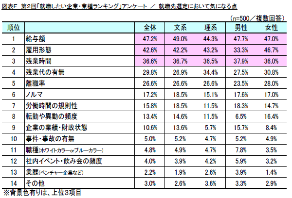 人気企業のキーワードは「一定収入」「正規雇用」「サービス残業なし」
