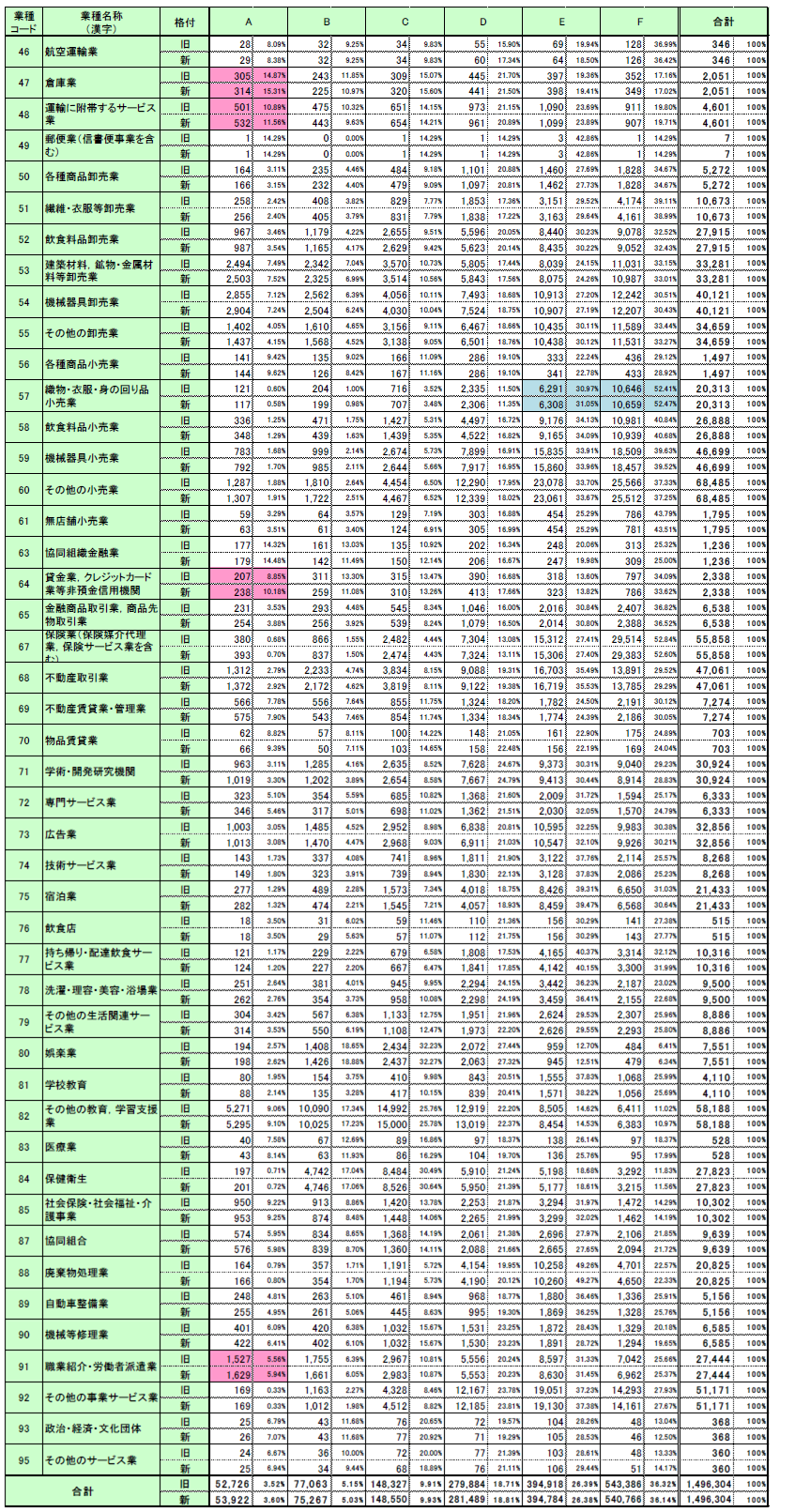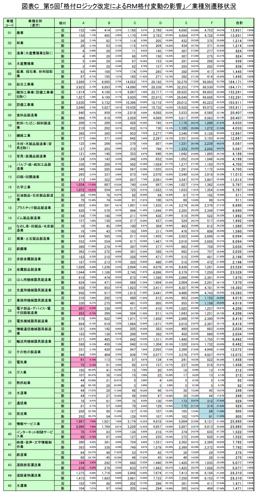 一方で、飲料・たばこ・飼料製造業、木材・木製品製造業(家具を除く)、業務用機械器具製造業、通信業、放送業、織物・衣服・身の回り品小売業などでF格が増加しています。(図表C)