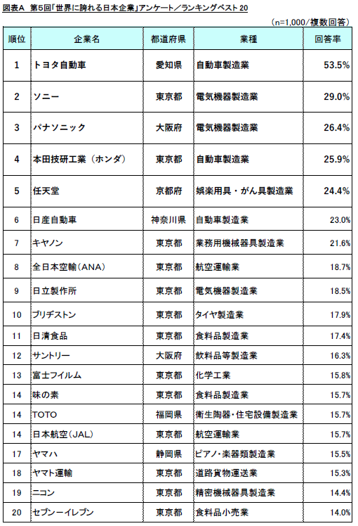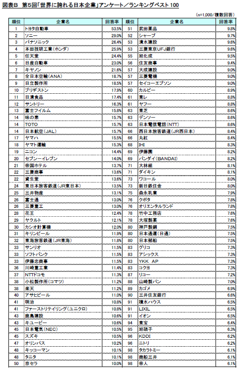 ・調査名称 : 第5回「世界に誇れる日本企業」調査