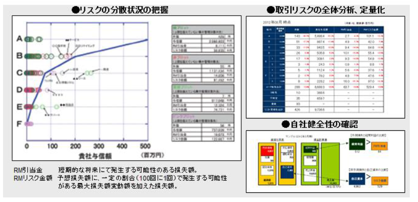 現状の取引状況から“安全”な取引先と“危険”な取引先を分類し、“危険”な取引先に対処することができます。またリスクの分布状況や金額を算定することで、分かりやすいルール策定が可能となり、会員様の与信管理体制の強化および効率化を実現することができます。