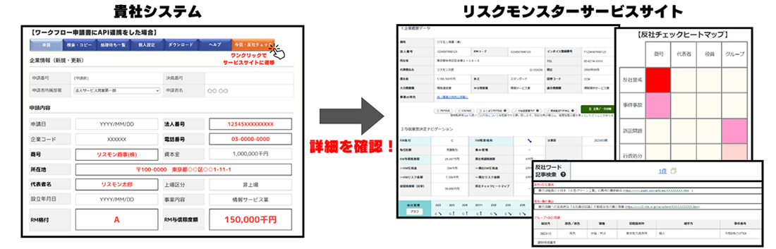 ワンクリックで与信チェック・反社チェックの詳細をすぐに確認できます