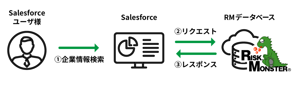 リスクモンスターの豊富な独自企業データベースをSalesforce上で簡単に照会・反映することができます。