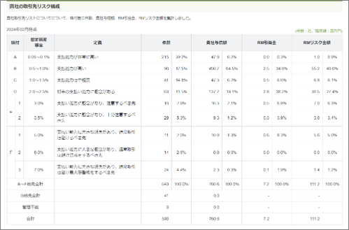 3.取引先全体のリスク構成や限度額分布などの分析ができる